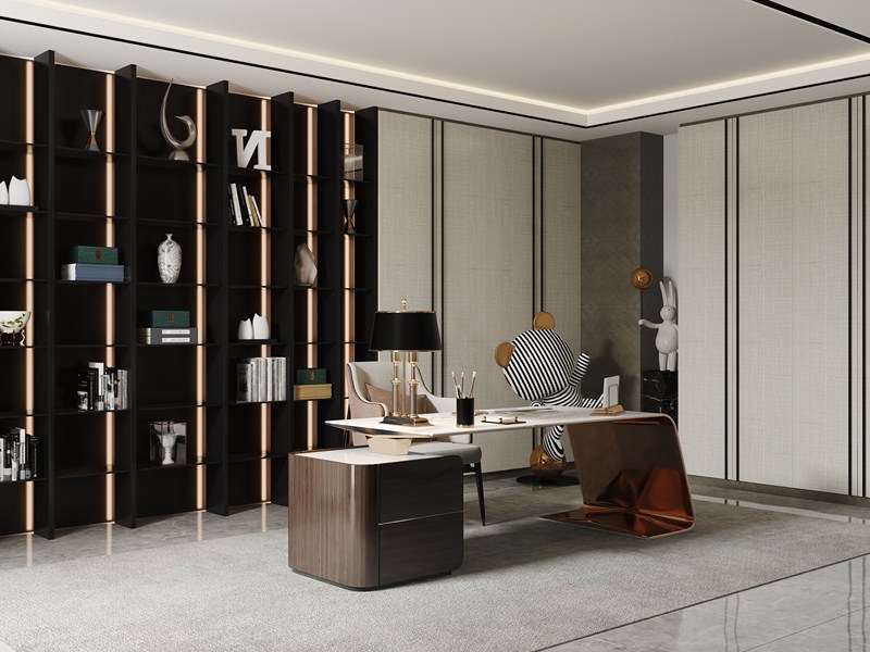 Study room-24 The modern study, with fashion and youth as the theme, makes the reading space elegant, delicate, and full of life sentiment. But also by virtue of the charm of material and design, the minimalist study is hidden in the bustling leisure and elegant simple extreme interpretation. Working from home is an increasingly popular trend, and the study is both an extension of the office and a part of home life.
