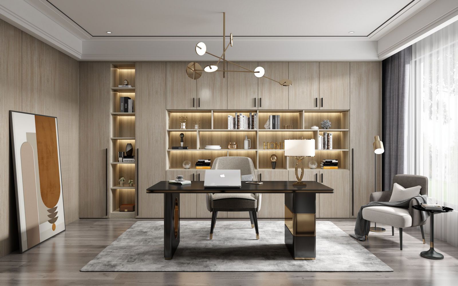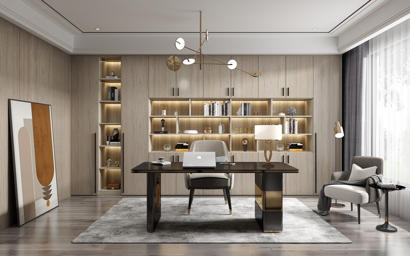 Study room-32 The modern study, with fashion and youth as the theme, makes the reading space elegant, delicate, and full of life sentiment. But also by virtue of the charm of material and design, the minimalist study is hidden in the bustling leisure and elegant simple extreme interpretation. Working from home is an increasingly popular trend, and the study is both an extension of the office and a part of home life.