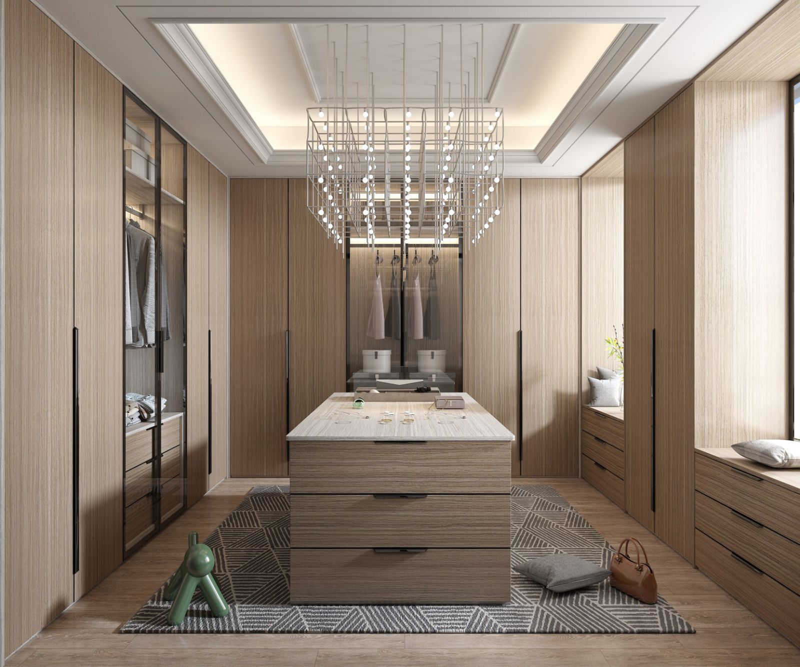 Wardrobe-25 Cloakroom is an important indicator of the quality of life, but also contains the variety of life. Through the use of materials, colors and the collocation of soft clothing, the light luxury style is created incisively and vividly. At the same time, glass, metal and other materials are cleverly used to broaden the visual sense and show the harmony of light and shadow, creating the elegant magic of the heart, making fashion and light luxury become a highlight of the space.