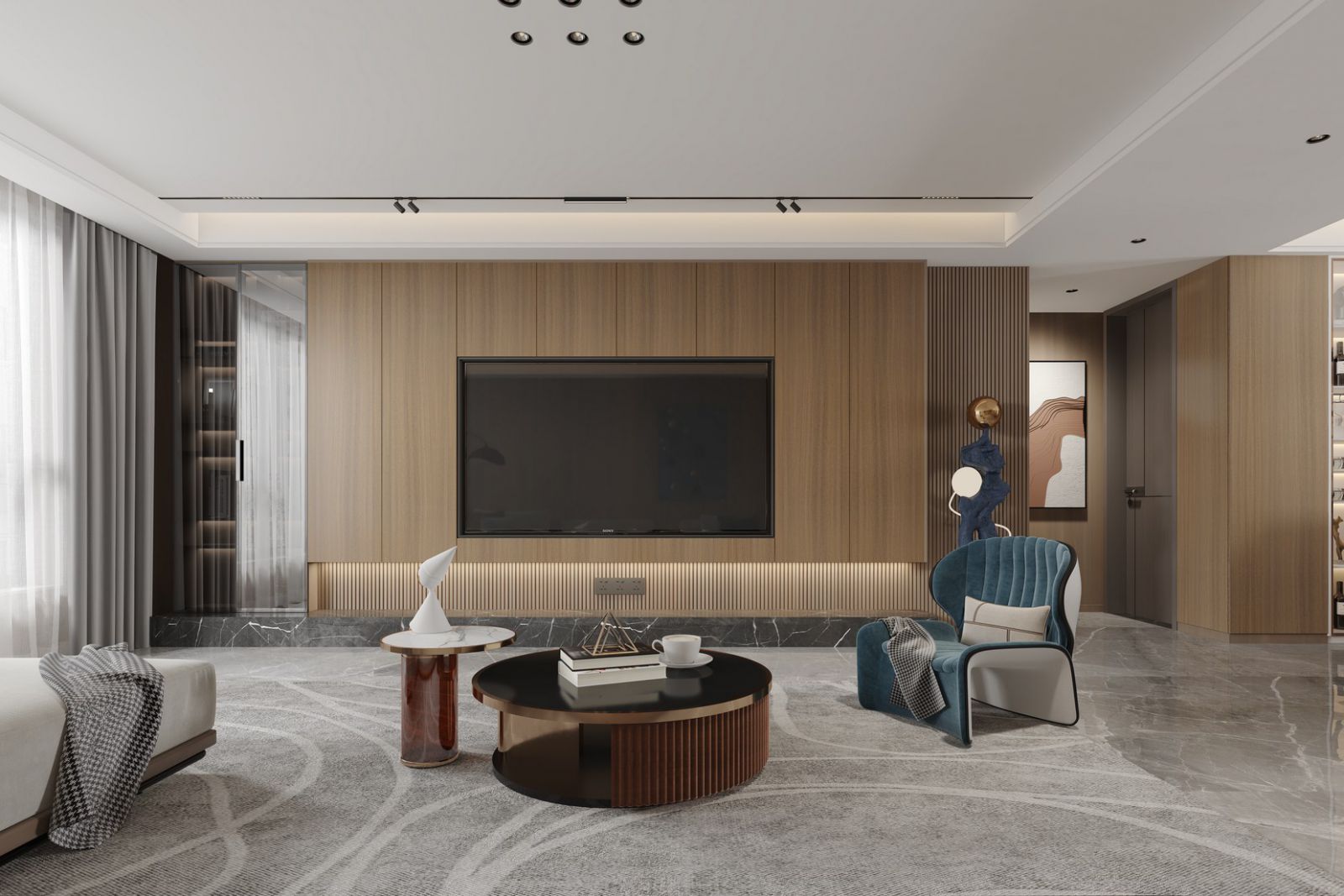 Living Room -23 The living room is the focal point of the home's design and every detail has been carefully designed to achieve a strong aesthetic while also providing a comfortable, modern and high-end environment.