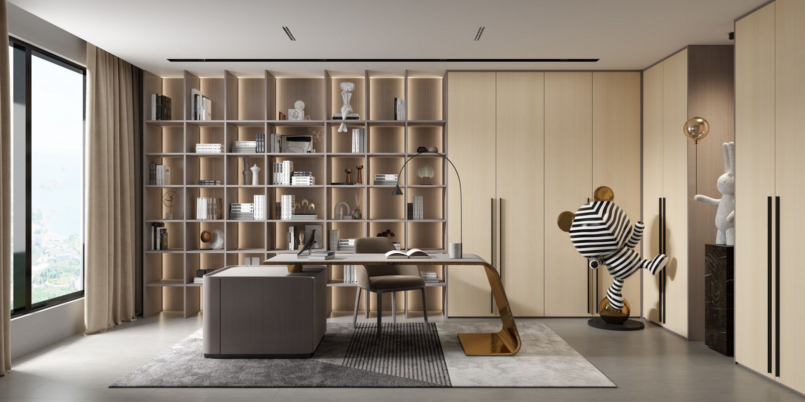 Study room-37 The modern study, with fashion and youth as the theme, makes the reading space elegant, delicate, and full of life sentiment. But also by virtue of the charm of material and design, the minimalist study is hidden in the bustling leisure and elegant simple extreme interpretation. Working from home is an increasingly popular trend, and the study is both an extension of the office and a part of home life.