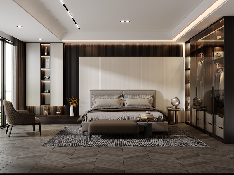 Bedroom-20 In the bedroom design and aesthetic, people are more pursuit of function and perfect unity, elegant and unique design style, solemn and do not lose the feeling of relaxed and romantic, so that the design of the bedroom seems simple, but actually infinite charm.