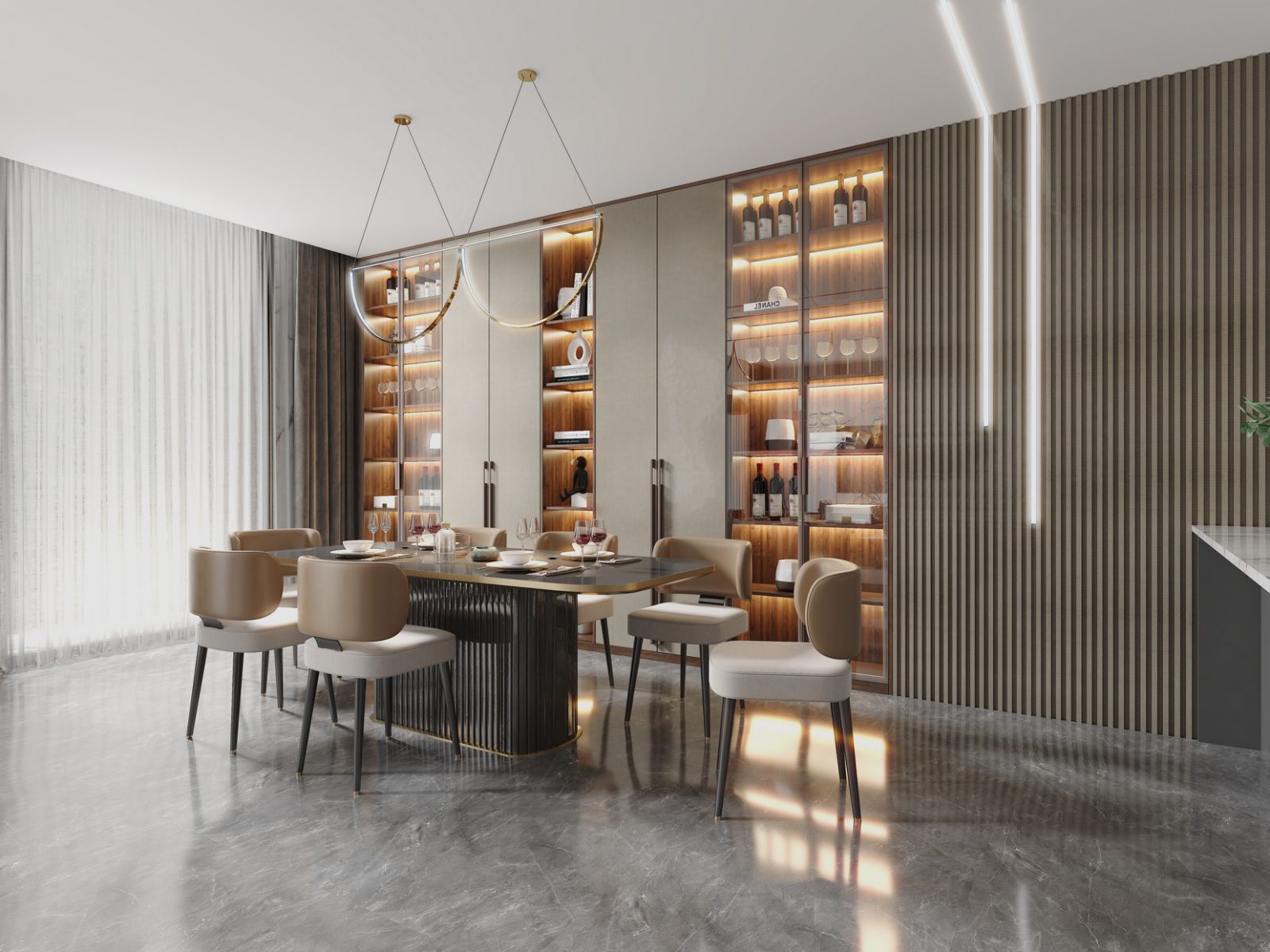Restaurant -3 Dining in the restaurant is the most pay attention to comfort and relaxation, with light color as the main color, so that the space is enlarged, visual bright, to create a pressure-free dining space, is very important. However, all the use of light color, but will blur the level of space, might as well use dark color in small places to strengthen the contrast, the level will be more distinct, in order to let the light color really play the effect of enlarging space.