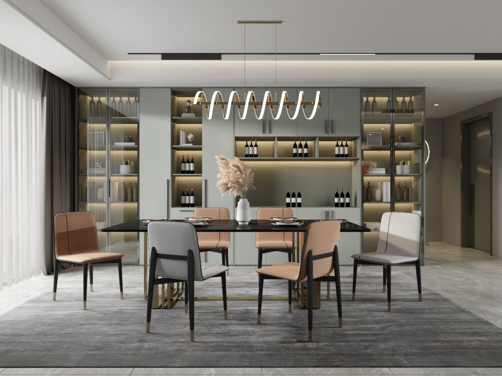 Restaurant -11 Dining in the restaurant is the most pay attention to comfort and relaxation, with light color as the main color, so that the space is enlarged, visual bright, to create a pressure-free dining space, is very important. However, all the use of light color, but will blur the level of space, might as well use dark color in small places to strengthen the contrast, the level will be more distinct, in order to let the light color really play the effect of enlarging space.
